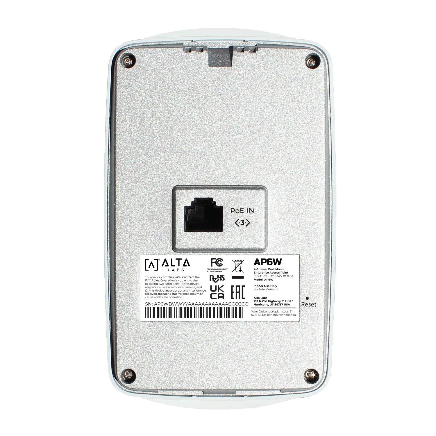 | Specifications for: ALT-AP6W: Alta Labs 4-Stream Wall Mount Enterprise Access Point |