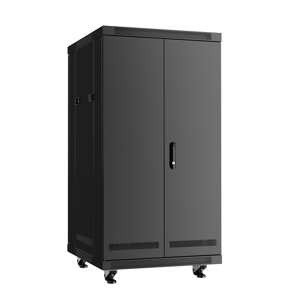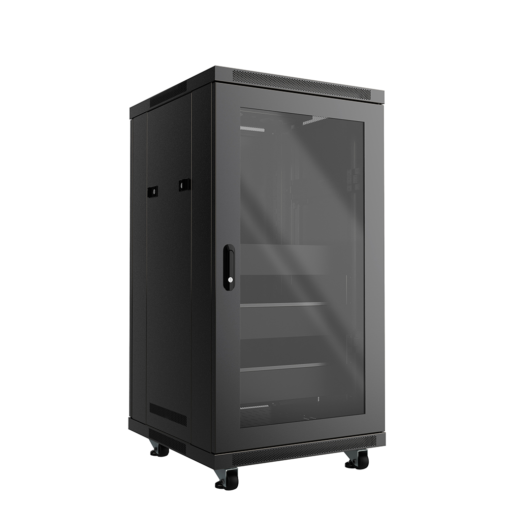 Comprend : porte avant en verre trempé verrouillable; porte arrière divisée verrouillable; panneaux latéraux amovibles; tablettes et panneaux vierges; roulettes de 2" et pieds de nivellement; 2 ventilateurs CC montés sur le dessus. Entièrement assemblé.